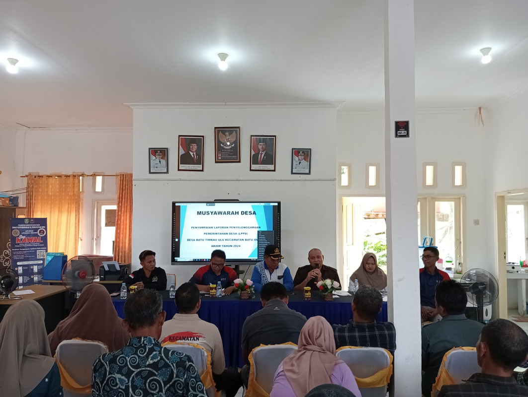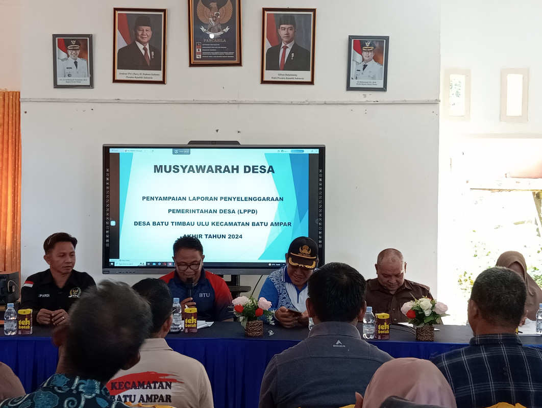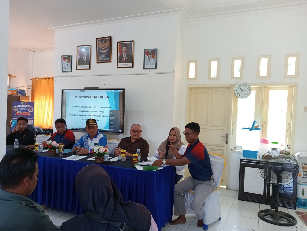Kepala Desa Batu Timbau Ulu Bapak Aripin Juga telah membacakan Jumlah pendapatan desa sepanjang tahun 2024 dan jumlah Belanja Desa sepanjang tahun 2024 yang di tanggapi langsung oleh pihak BPD dan Perwakilan Kecamatan berjalan dengan lancar hingga akhir penandatanganan berita acara.